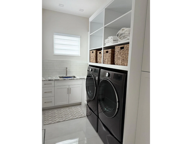 When incorporating appliances into laundry room designs, cabinetry must be precise, spacious, and resistant to moisture.
